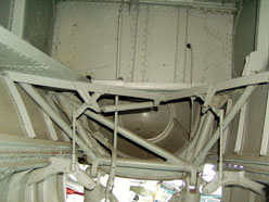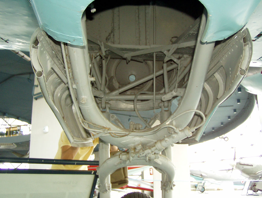 Both main wheel wells were photographed. One discerning feature between the two units is the frontal circular orifice that exists on the port undercarriage nacelle only. Inside the bays the hydraulic actuators of the aft U-shaped strut are on the outer side of the corresponding leg.